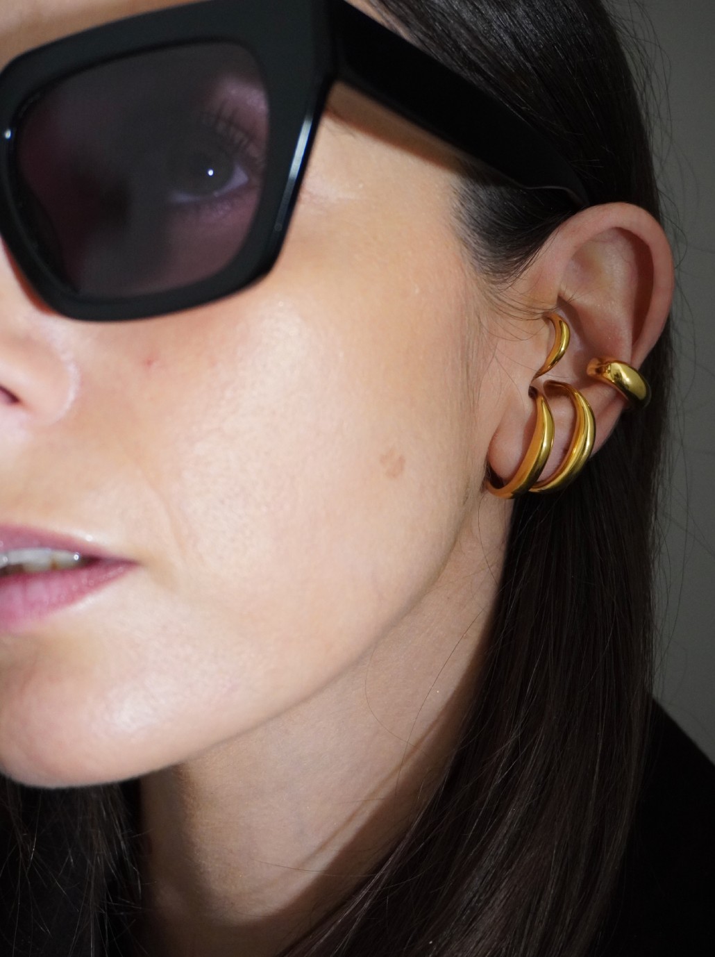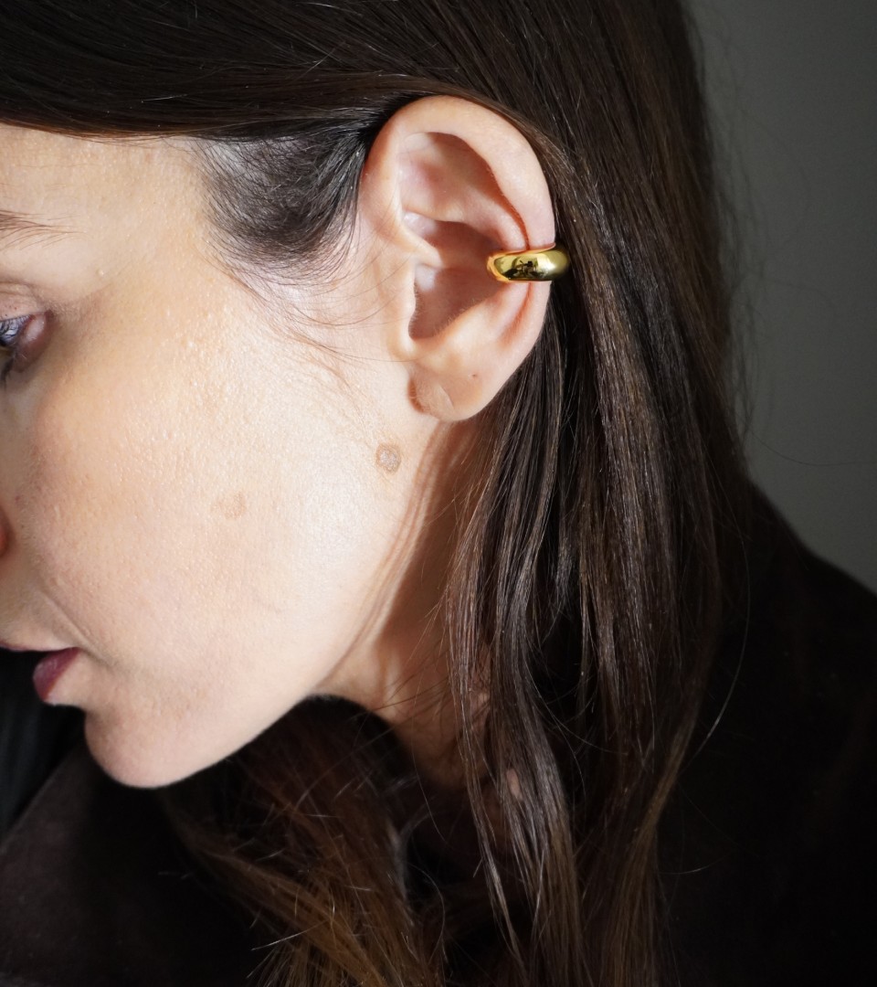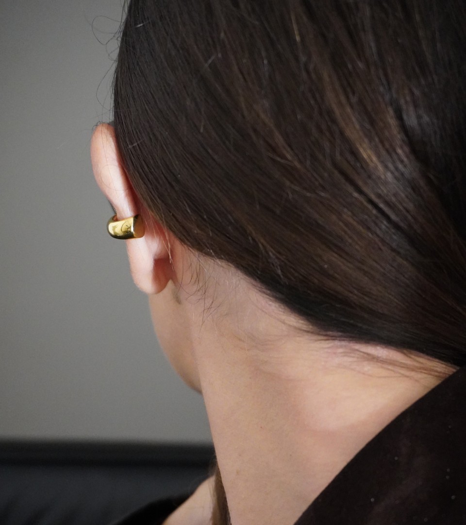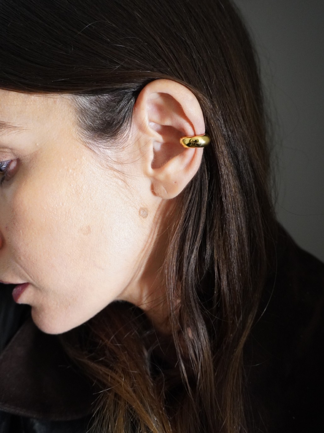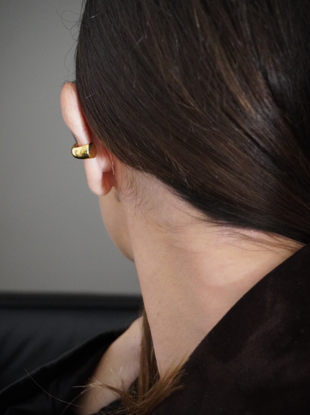 Nouveauté 2025. Cuff d’oreille enveloppante, sublimée par son revers poli miroir biseauté. Peut se porter des deux côtés des oreilles. Vendue à l’unité. Disponible en Plaqué Or Jaune 24 carats et Argent massif.