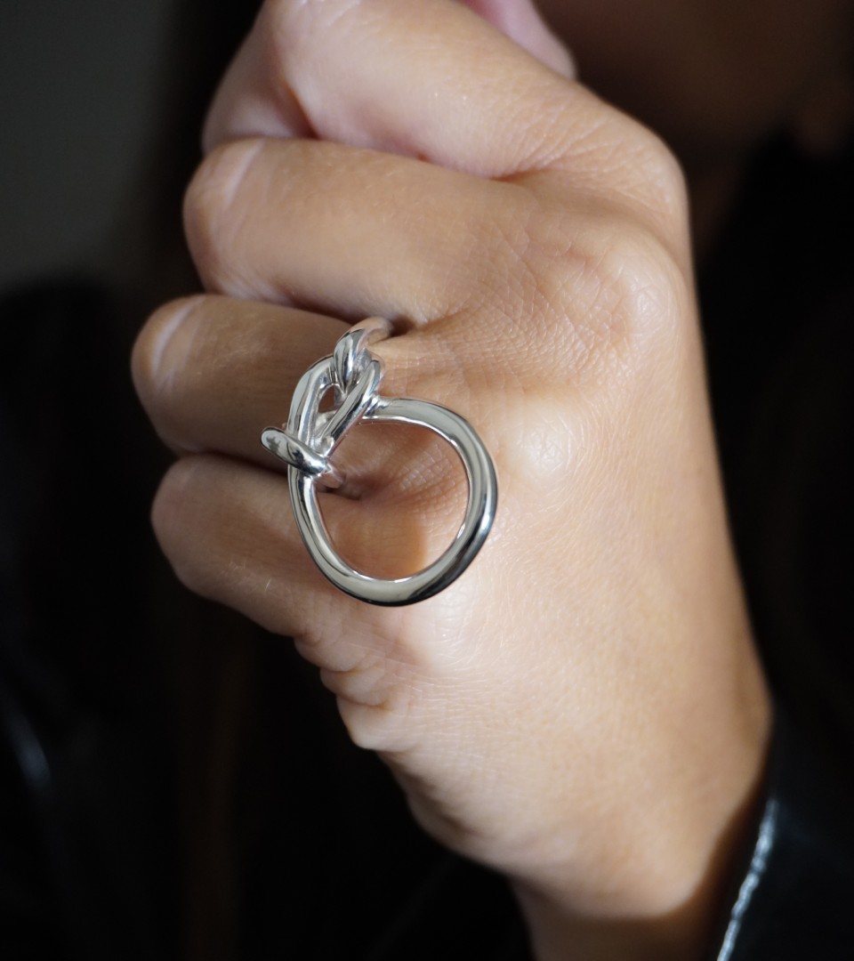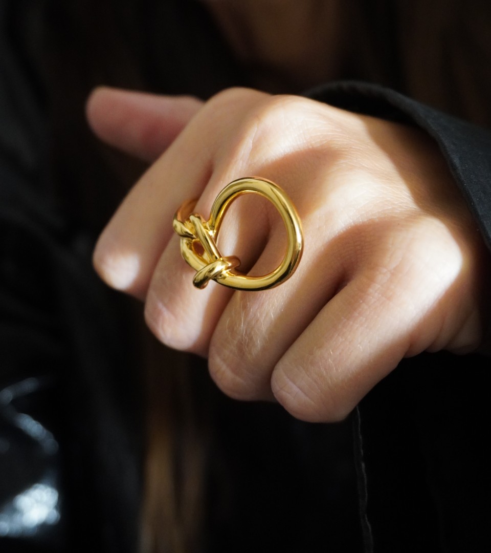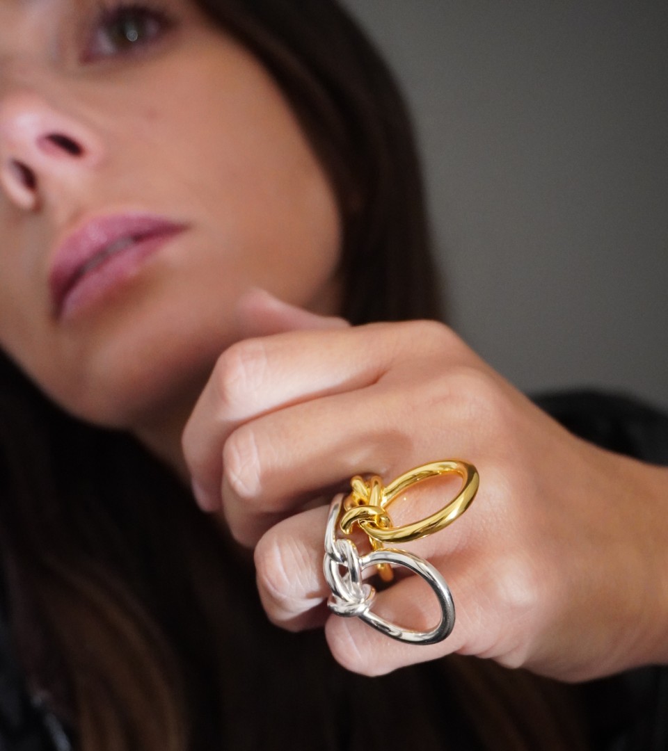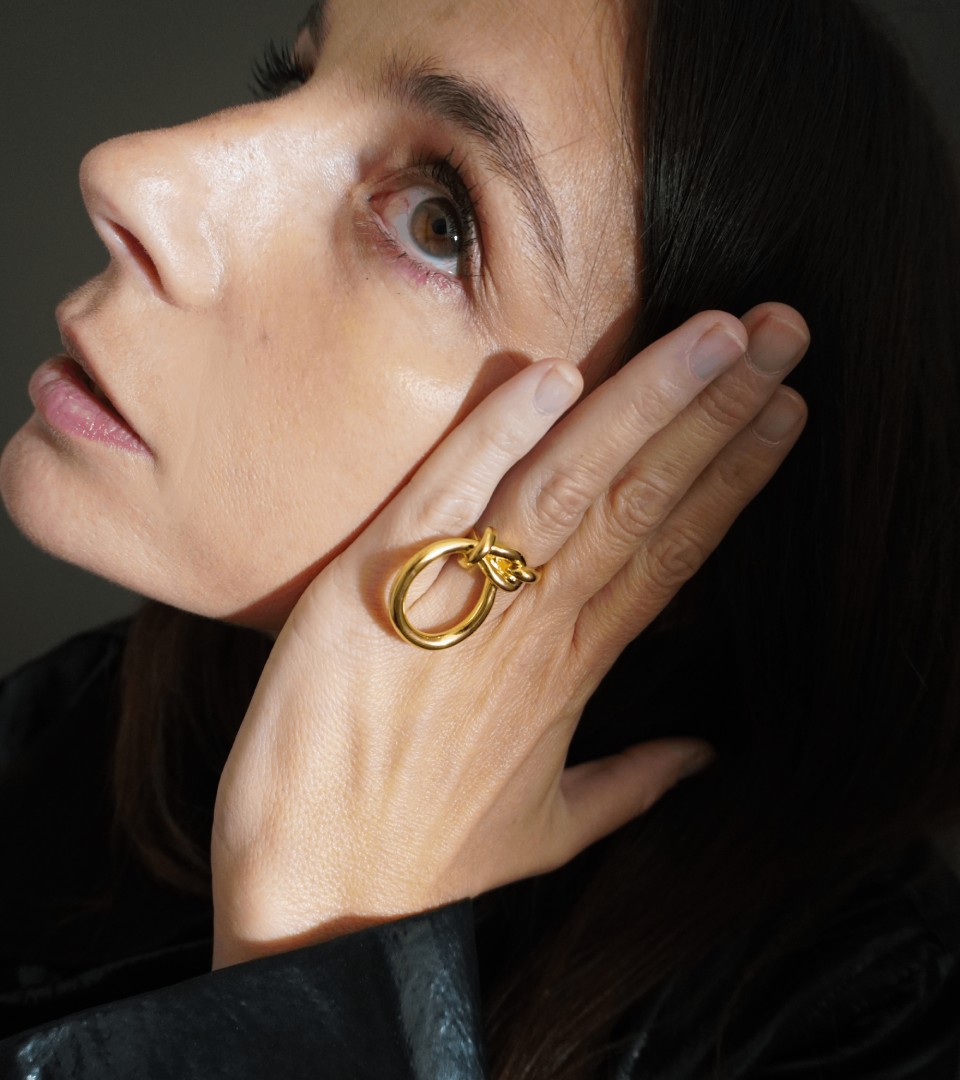 Bague iconique depuis 2015. Entre jeux de mains et de regards, cette élégante, discrète et distinguée dévoile subtilement la femme, et avec elle sa créativité. Disponible en Plaqué Or jaune 24 carats et Argent massif.